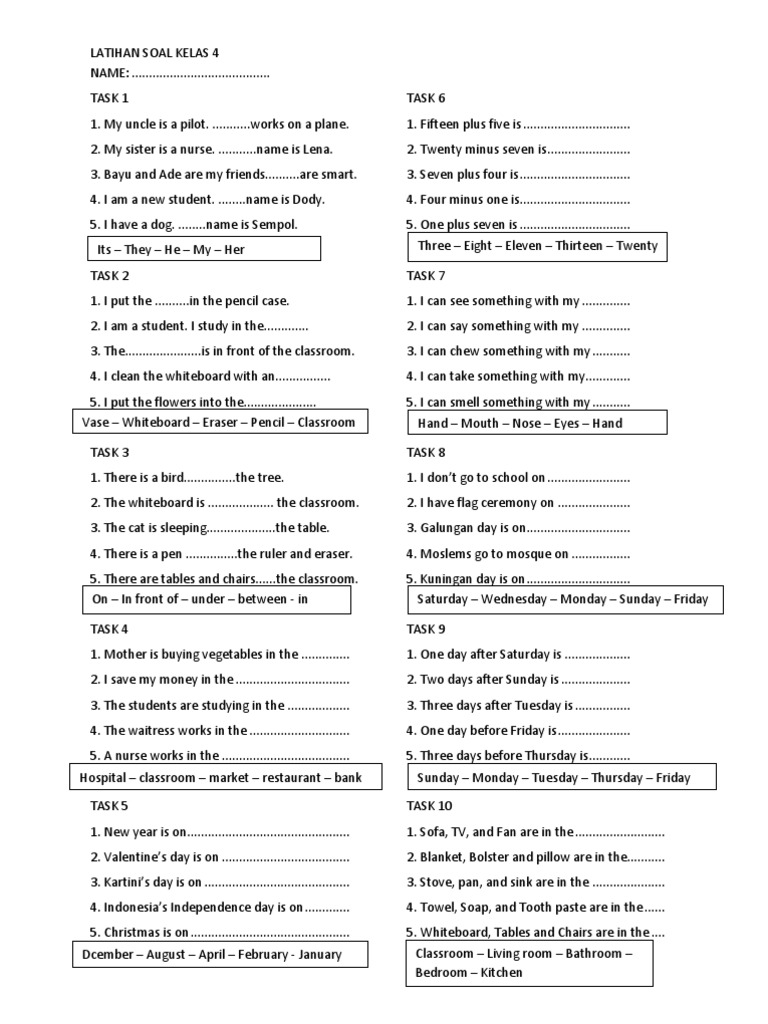 Inggris sekolah dasar terjawab • terverifikasi oleh ahli bahasa inggrisnya jam 06.10 1 lihat jawaban. Twenty five to six (pukul 6 kurang 25 menit) 08.50 : => soal telling time untuk sd dan kunci.